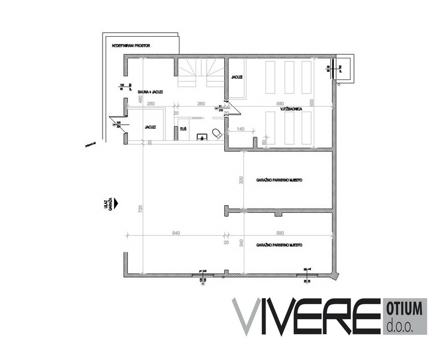 Moderna arhitektura s mediteranskim stihom u kombinaciji sa modernim interijerom stvara vrlo poseban ambijent. Ovaj arhitektonski dragulj s velikodušno uređenim stambenim prostorom nudi sve zamislive udobnosti. Vila ima potpuno izgrađen podrum s velikom garažom, spa s jacuzzijem i saunom, kupaonicu s tušem i potpuno opremljenu teretanu. Prizemlje je podijeljeno na ulazni prostor s gostinjskim WC-om, zasebnu kuhinju, prostrani i otvoreni dnevni boravak sa blagovaonicom i pristupom natkrivenoj terasi i jednu spavaću sobu s en-suite kupaonicom. Dva gornja kata imaju skoro identičan tlocrt. Oba kata nude uz prostrani master suite dodatne dvije spavaće sobe s vlastitim kupaonicama. Vilu okružuju brojni balkoni i otvorene terase. Vrt je uređen ukusno i jednostavno sa mediteranskim biljkama, a cijeli dojam upotpunjuje osvjetljeni bazen sa sunčalištem i vanjskim kaminom.