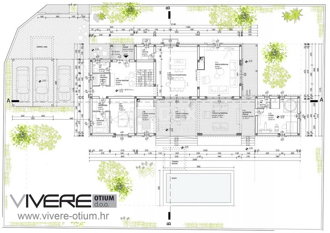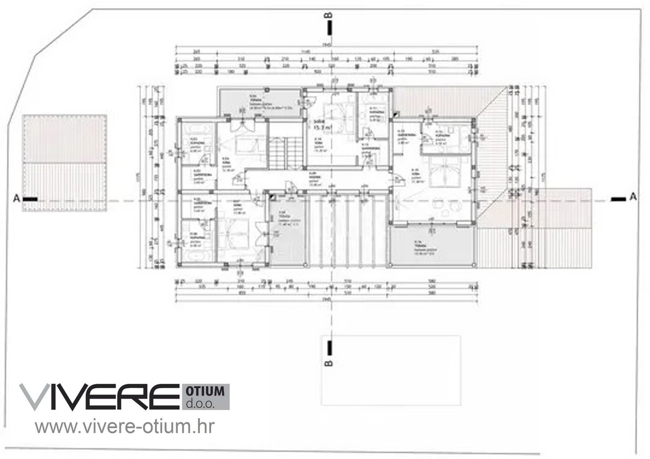 Nakon samog ulaska u ovu jedinstvenu imovinu i prelazom praga otvorit će vam se uvid u nevjerojatan prostor, gdje se odmah primijeti s koliko je pažnje i ljubavi ova nekretnina opremljena. Velečanstveni ulazni prostor s stepenicama do drugih etaža nudi toalet za goste i praonicu te pristup jednoj spavaćoj sobi s walk-in garderobom i en suite kupaonicom. Iz hodnika se ulazi u udoban dnevni prostor s modernom kuhinjom i blagovaonicom. Moderan otvoreni kamin stvara prirodnu poveznicu s udobnim dnevnim boravkom. Cijeli dnevni dio izlazi na prekrasnu natkrivenu terasu koja je nedvojbeno srce imanja i poziva na boravak u vrućim ljetnim danima te je izravno povezana s potpuno opremljenom, luksuznom ljetnom kuhinjom. U neposrednoj susjednoj depandansi pronaći ćete svoju privatnu wellness oazu, opremljenu saunom i whirlpoolom, kao i tušem te zasebnim WC-om. Samo nekoliko stepenica vodi s terase u pažljivo uređen vrt s velikim grijanim vanjskim bazenom od cca 40 m². Gornji kat nudi četiri elegantne spavaće sobe, svaka sa svojom vlastitom, prvoklasnom en-suite kupaonicom i walk-in garderobom. Sve spavaće sobe imaju pristup veličanstvenim, natkrivenim terasama s prekrasnim panoramskim pogledom na prirodu. Najveće iznenađenje očekuje vas na najnižoj razini vile, veliki zabavni prostor za društvena okupljanja, opremljen biljarom, pikadom, šankom i velikom Chesterfield sofom s koje možete udobno uživati u sportskim događanjima na velikom televizijskom ekranu. Iza imanja nalazi se košarkaško igralište koje je pogodno i za druge sportove, te dječje igralište. Cijelo imanje je klimatizirano i opremljeno podnim grijanjem. Kamin u dnevnom boravku stvara ugodnu atmosferu čak i u hladnim zimskim danima. Prilaz nekretnini nudi ukupno 5 parkirnih mjesta od kojih su dva natkrivena te punionicu za električne automobile.